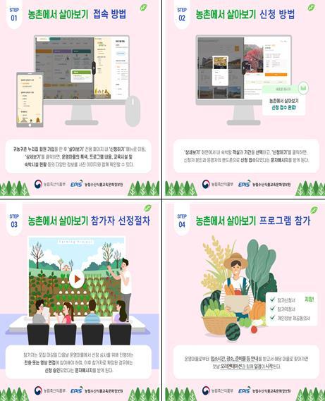 농식품부 정현출 농업정책국장은 “‘농촌에서 살아보기’는 도시민이 희망하는 지역에 직접 살아보는 기회를 통해 새로운 환경에 적응하기 전의 두려움과 시행착오를 줄이는데 큰 의미가 있다”라며, “도시민의 귀농귀촌에 대한 관심과 수요가 실제 농촌으로의 안정적인 이주와 정착으로 이어질 수 있도록 뒷받침하겠다”라고 말했다.