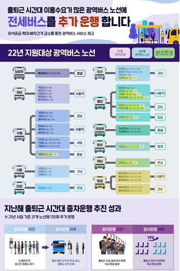 아울러, 기존에 증차지원사업을 시행 중인 30개 노선은 올해에도 하루 135대의 전세버스가 차질 없이 운행될 예정이다.
