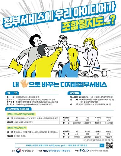 이번 공모는 사용자의 참여와 제안을 통해 수렴한 우수 아이디어를 실제 정부서비스에 반영함으로써, 사용자 눈높이에 맞는 디지털정부서비스를 실현하기 위해 마련됐다.