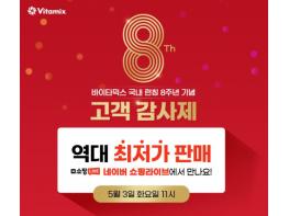 블렌더 제조 전문 기업 바이타믹스가 국내 론칭 8주년을 맞아 네이버 쇼핑라이브에서 ‘고객 감사제’를 진행한다고 2일 밝혔다.