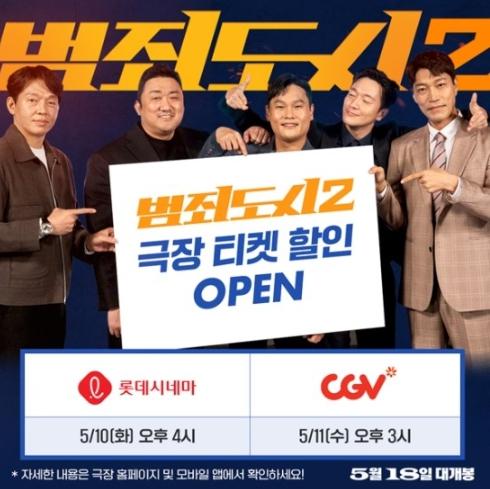 영화 '범죄도시2'는 한국영화 부활 신호탄이 될 작품으로 기대를 모으고 있는 만큼, 이번 티켓 이벤트 역시 전량 매진될 것으로 예상된다. 티켓 이벤트에 대한 자세한 내용은 극장별 애플리케이션 및 홈페이지 내 이벤트 페이지를 통해 확인할 수 있다.