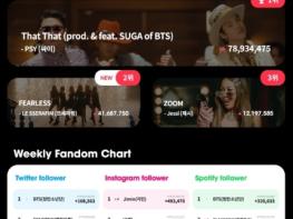 뮤직비디오 차트에 이어 규모 있는 팬덤 확장을 기록한 아티스트를 공개하는 ‘주간 팬덤 차트’도 눈길을 끌었다.