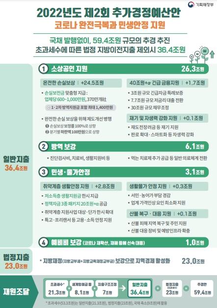 [한국쇼핑몰뉴스, 최영진기자] 정부는 코로나19를 완전히 극복하고 민생안정을 뒷받침하기 위해 2022년도 2회 추가경정예산안을 편성했다.
