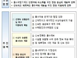 이에 따라 환경부는 '선제적·체계적인 홍수관리로 인재 발생 방지'를 위해 ①관계기관 간 협업·주민소통 강화를 통한 선제적 홍수관리 체계 구축, ②홍수위험지역의 인명피해 최소화를 위한 현장 중심의 대응력 강화, ③신속하고 체계적인 홍수피해 대응을 위한 현장 지원체계 강화를 목표로 올해 홍수대응을 추진한다.