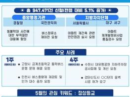 올해 4월 민원 발생량은 총 94만 7,471건으로, 전월(901,113건) 대비 5.1% 증가, 전년 동월(139만 3,028건) 대비 32.0% 감소했다.