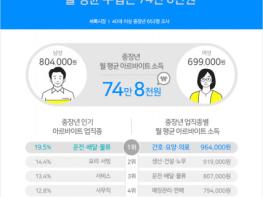 중장년 아르바이트 근로자들의 월평균 소득은 74만8000원, 주당 근무 시간은 18.4시간으로 집계됐다.