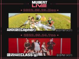 글로벌 케이팝 플랫폼 뮤빗(Mubeat)에 따르면 오는 23, 24일 양일간 진행되는 뮤빗라이브(Mubeat Live)에 신인그룹 싸이퍼(Ciipher)와 클라씨(CLASS:y)가 출연한다.
