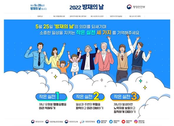 [한국쇼핑몰뉴스, 최영진기자] 행정안전부는 5월 25일(수)'2022 방재의 날'을 맞이하여 5월 20일(금)부터 29일(일)까지를 방재주간으로 설정하고, 온라인 누리집을 통해 국민에게 유익한 재난 정보를 안내한다고 밝혔다.