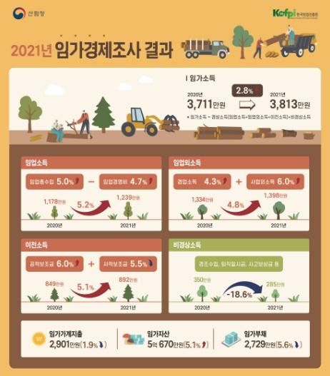 산림청은 이러한 내용을 주로 하여 2021년 임가 경제조사 결과를 23일 발표했다.