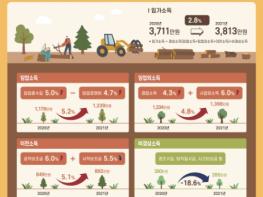 [한국쇼핑몰뉴스, 최영진기자] 지난해 임가의 가구당 연간 소득은 3,813만 원으로 전년(2020년 3,711만 원) 대비 2.8% 증가한 것으로 나타났다.