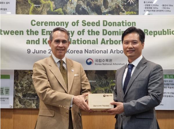[한국쇼핑몰뉴스, 최영진기자] 산림청은 6월 9일 국립수목원에서 주한도미니카공화국대사관과 함께 한-도미니카공화국 수교 60주년을 기념하는 우호의 종자 기증식을 가졌다.