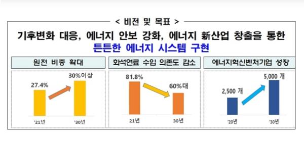 특히 2030년 원전 비중 30% 이상 확대를 제시해 탄소중립과 에너지 안보를 위한 원전 활용도 제고를 정부 정책으로 공식화했다.