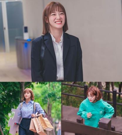 단발병을 유발하는 사랑스러운 ‘똑단발’로 스타일링에도 변화를 줬다. 올림픽 금메달리스트를 꿈꾸던 ‘선출(선수 출신)’이라는 남다른 스펙을 가진 인물의 스포티하고 활동적인 느낌을 강조하기 위해서다. 이마를 덮은 ‘뱅’은 사랑스러움을 배가시킨다. 여기에 동반되는 ‘신입사원 룩’ 역시 눈길을 끈다. 멋 부리지 않으면서도 활동에 지장이 없을 것 같은 깔끔한 정장 스타일링은 직장인으로서 처음 사회에 발을 내디딘 순수한 새내기답다.