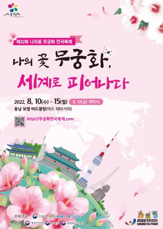 [한국쇼핑몰뉴스, 최영진기자] 산림청은 오는 8월 10일부터 15일까지 충남 보령 머드광장 일원에서 ‘제32회 나라꽃 무궁화 전국 축제’를 개최한다고 밝혔다.