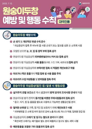 [한국쇼핑몰뉴스, 최영진기자] ◆ 원숭이 두창 복 예방 및 행동수칙 ① 대국민용