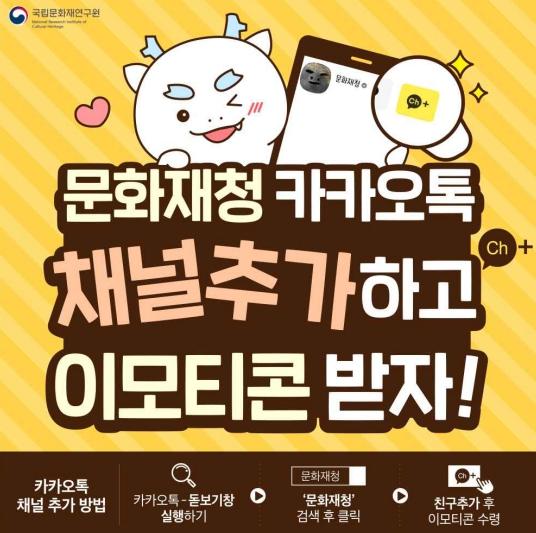 [한국쇼핑몰뉴스, 최영진기자] 문화재청 국립문화재연구원은 기록유산인 금석문을 국민들이 친근하게 접할 수 있도록 제작한 카카오톡 그림말(이모티콘) "코룡이와 코북이의 천년 사랑” 16종을 7월 19일 오후 2시부터 8월 2일 오후 1시 59분까지 카카오톡 채널을 통해 무료로 배포한다.