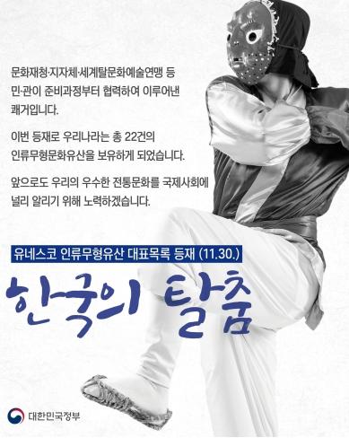 문화체육관광부, ‘한국의 탈춤’ 유네스코 인류무형유산 등재
