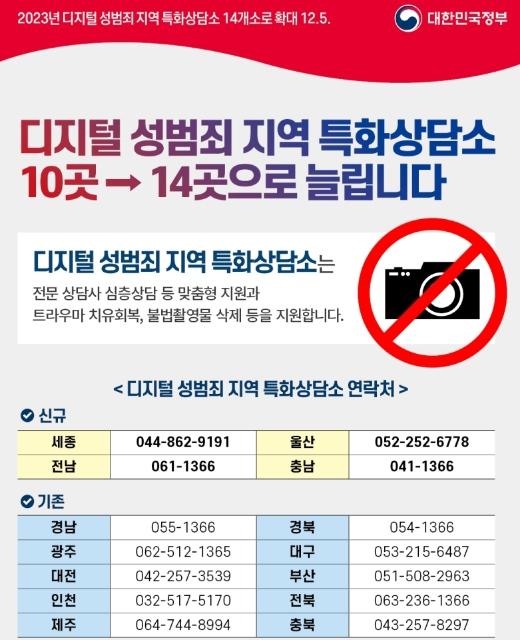 문화체육관광부, 내년부터 디지털 성범죄 지역 특화상담소 14곳으로 확대