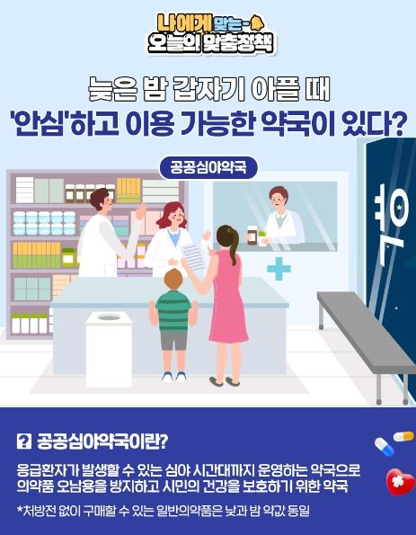 정책브리핑이 휴일·심야 시간대에도 이용이 가능한 ‘공공심야약국’에 대해 알려드립니다!