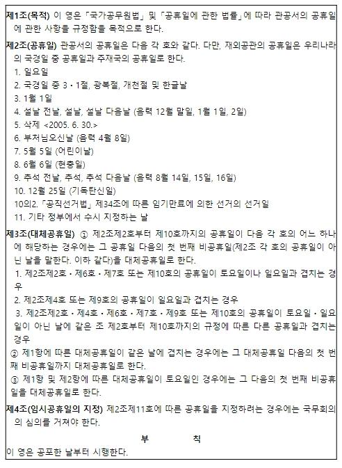 인사혁신처는 이 같은 내용을 담은'관공서의 공휴일에 관한 규정'개정안(대통령령)이 국무회의를 통과해 부처님오신날과 기독탄신일에도 대체공휴일이 확대·적용된다고 2일 밝혔다.