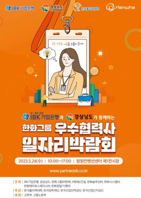 한국폴리텍대학(이사장 직무대리 임춘건,‘폴리텍’)은 오는 24일 창원컨벤션센터 제1전시장에서 IBK기업은행, 경상남도, 한화그룹과 함께 ‘한화그룹 우수협력사 일자리 박람회’를 연다고 3일 밝혔다.