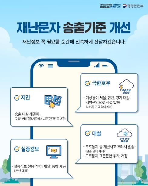 행정안전부에서는 기상청, 경찰청 등 관계부처와 협의하여 아래와 같은 개선방안을 마련했다.