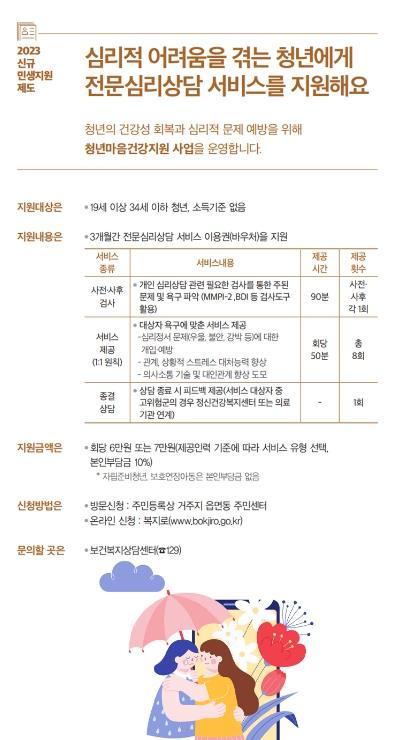 [한국쇼핑몰뉴스, 최영진기자] 청년의 건강성 회복과 심리적 문제 예방을 위해 청년마음건강지원 사업을 운영합니다.