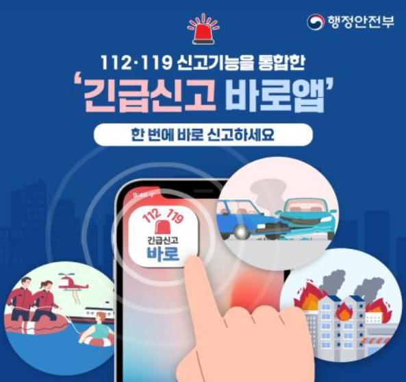 행정안전부는 112·119 신고 기능을 모바일앱 하나로 통합한 ‘긴급신고 바로앱’ 서비스를 5월 17일부터 제공한다고 밝혔다.