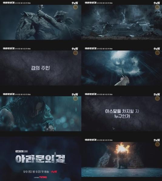 tvN 새 토일드라마 ‘아라문의 검’(극본 김영현, 박상연/ 연출 김광식/ 기획 스튜디오드래곤/ 제작 스튜디오드래곤, KPJ)이 9월 9일(토) 밤 9시 20분 첫 방송을 확정, 이와 함께 레거시 티저 영상을 공개해 기대감을 대폭 상승시키고 있는 것.