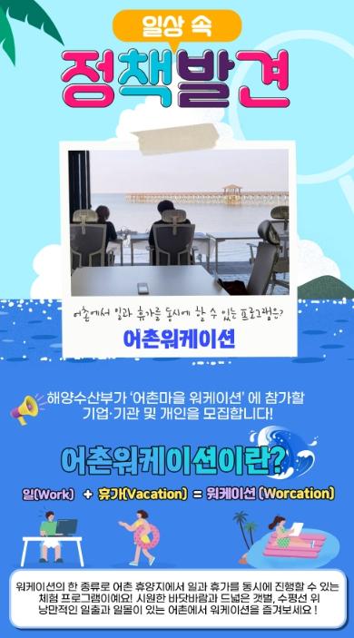 [한국쇼핑몰뉴스, 최영진기자] 해양수산부가 ‘어촌마을 워케이션’에 참가할 기업·기관 및 개인을 모집합니다!