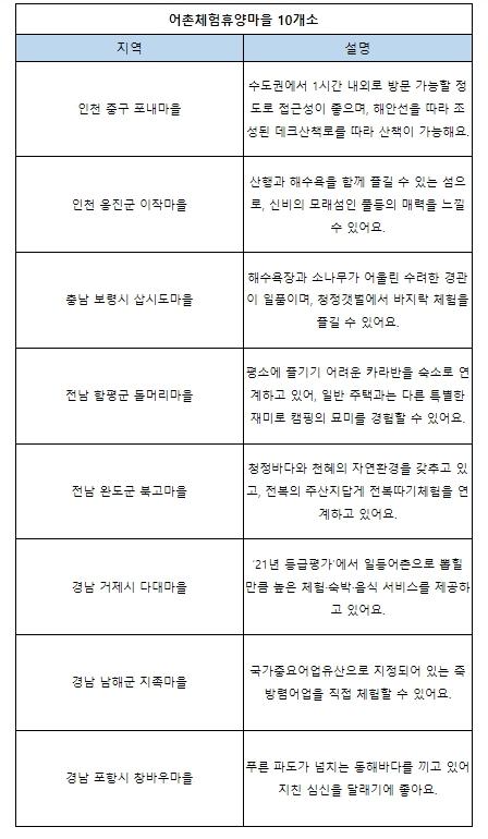 ■ 어떤 어촌체험휴양마을이 있나요?