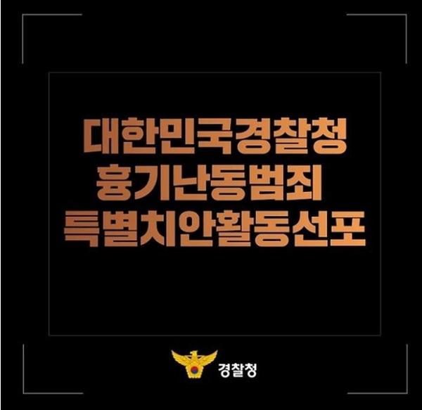 경찰은 지금 이 순간부터 국민불안이 해소될 때까지 비상한 각오로 흉기난동과 그에 대한 모방범죄 등 흉악범죄에 대응하기 위한 특별치안활동을 선포합니다.