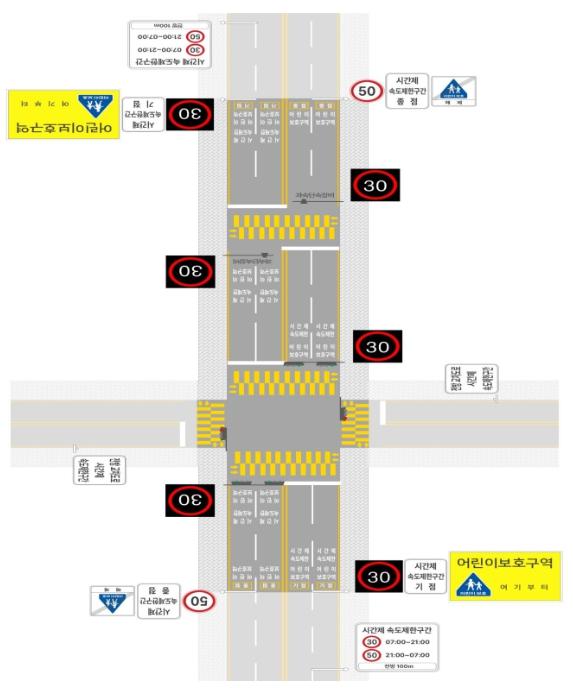 구체적으로 간선 도로상에 있는 어린이보호구역에 대해 국민 불편 해소를 위해 어린이 사고 및 통행이 적은 심야시간 제한속도를 30km/h에서 40~50km/h로 운영하고, 제한속도 40~50km/h로 운영 중인 어린이보호구역은 등하교 시간대 어린이 교통안전을 위해 30km/h로 합리적으로 조정한다.