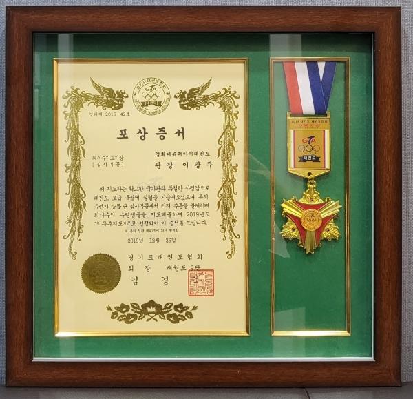 A 경기도 2,800여 개의 태권도장 중 국기원 심사부문 3년 연속 최우수도장으로 선정된 것은 명실상부 대한민국 최고의 태권도장임이 입증됐으며 제자들이 성장하여 김포를 대표하는 김포시 시범단으로 활약하고 있습니다. 전국 대회에서도 입상 및 김포시 태권도 대회에서도 2종목 종합우승을 수상한 것이 가장 보람됐으며 기억에 남는 일입니다.