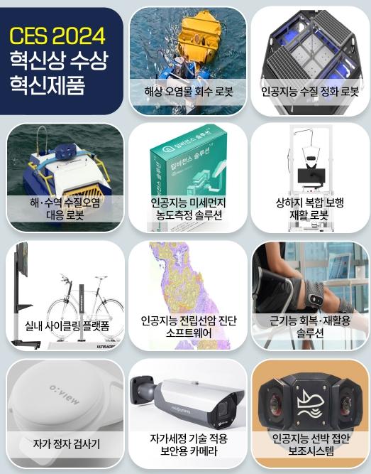 조달청은 9일부터 12일까지 미국 라스베이거스에서 열린 세계 최대 국제전자제품박람회인 CES 2024에서 11개 혁신기업의 11개 혁신제품이 ‘CES 혁신상’을 수상했다고 밝혔다.