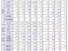 사업자별로는 △지상파 TV(1조 3,762억 원, +1.2%), △PP(2조 1,524억 원, △1.4%), △라디오(2,540억 원, △2.2%), △SO(1,096억 원, +0.6%), △IPTV(961억 원, △10.2%), △위성방송(307억 원, △7.0%) 등 방송 사업자 대부분의 광고비가 감소했다.