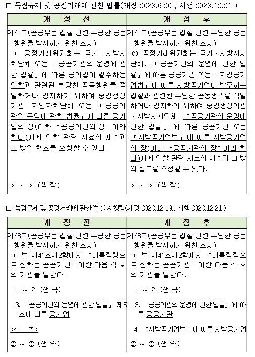 지금까지 중앙정부기관, 지방자치단체, 공기업만이 분석시스템에 입찰정보를 제출하고 있어서 그 외의 공공기관이 발주하는 입찰은 감시하기 어려운 사각지대였다. 이를 해소하기 위하여 공정위는 2023년에 공정거래법령을 개정하여 3개 범주의 공공기관(준정부기관, 기타 공공기관, 지방공기업)도 의무적으로 입찰정보를 제출하도록 법제화했다.