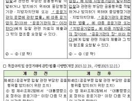 [한국쇼핑몰뉴스, 최영진기자] 공정거래위원회는 공공분야 입찰담합감시 강화를 위해 2024년 1월부터 입찰정보제출기관을 기존의 국가, 지자체, 공기업에서 대폭 확대하여 준정부기관, 기타 공공기관, 지방공기업까지 포함할 계획이다.
