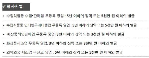 식약처는 식?의약 분야에서 새롭게 영업을 시작할 때 형사처벌 받는 사례가 발생하지 않도록 관련 규정을 반드시 확인해 달라고 당부했다.