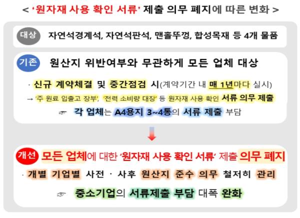 원자재 사용 확인 서류 의무 제출은 제도 시행 후 서류 준비 등으로 인한 시간 소요·비용 발생으로 관련 업계에 부담으로 작용해왔다.
