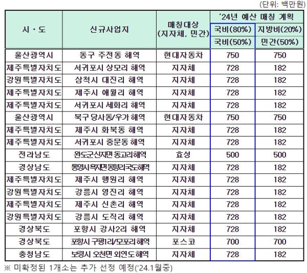 특히, 블루카본 증진 등에 적극 동참하고자 하는 현대자동차, 효성그룹, 포스코와 같이 2024년부터 2027년까지 총 73억 원(국가와 민간이 50:50)을 투입하여 울산·완도·포항 연안해역에 민?관 협력 바다숲 4개소를 조성한다.