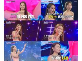 ‘미스고’로 시작하는 첫 소절부터 쭉 뻗는 보이스로 소름을 돋게 만든 미스김은 수준급의 꺾기와 깊이 있는 음색, 디테일한 표현력으로 정통 트로트 감성을 제대로 선보였다.