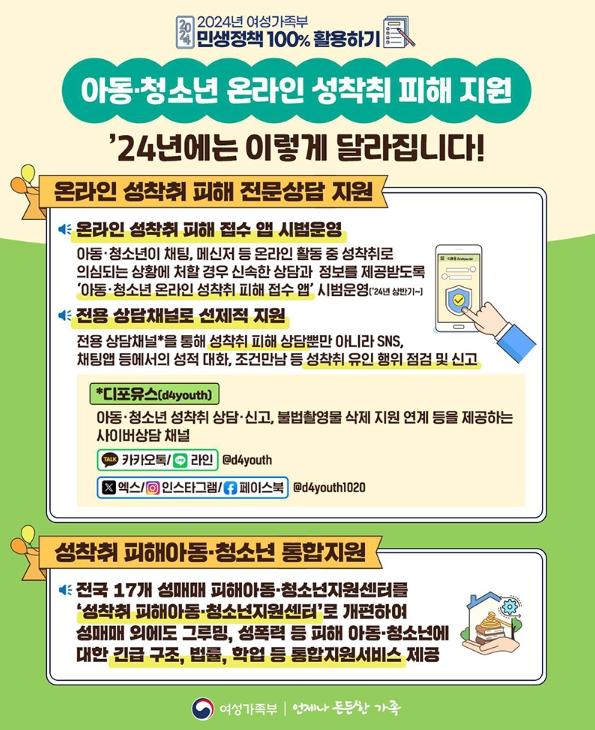 여성가족부, ‘아동·청소년 온라인 성착취 피해 지원’ 이렇게 달라집니다