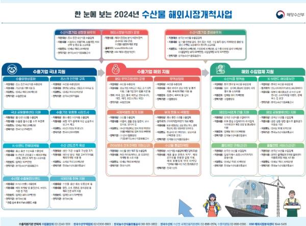 [한국쇼핑몰뉴스, 최영진기자] 해양수산부는 1월 24일부터 2월 1일까지 전국 6개 권역에서 어업, 양식업, 가공업, 내수기업, 수출기업 등 관계자를 대상으로 ?2024년 수산식품 수출기업 지원사업 설명회?를 개최한다.