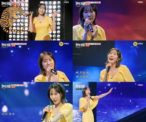 ‘배 띄어라’를 선곡, 옐로우 컬러의 드레스로 우아함을 과시한 별사랑은 시작부터 폭발적인 가창력과 흥으로 감탄을 불러일으켰고 풍부한 표현력으로 눈을 뗄 수 없게 만들었다.