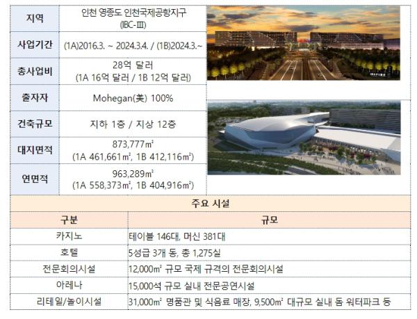 인스파이어는 인천국제공항국제업무지역(IBC)-III 약 14만 평 대지에 복합리조트를 조성하면서, 카지노 전용영업장 면적은 총시설면적의 4.1% 수준으로 최소화했다. 대신 복합리조트 내에 15,000석 규모의 다목적 전문공연장을 비롯해, 5성급의 호텔객실 1,275개, 국제규격의 국제회의시설, 대형 실내 워터파크, 쇼핑몰, 식당가 등의 다양한 관광 기반 시설을 갖추어 외국인 카지노 고객뿐만 아니라 한류 문화에 관심 있는 외래 관광객 유치에도 앞장서 나갈 것으로 기대된다. 특히 인스파이어는 베이징·도쿄·홍콩 등에서 4시간 내 도착 가능한 인천국제공항과 인접하여 있다. 인스파이어는 이러한 지리적 이점을 바탕으로, 복합리조트 내 시설과 연계한 다양한 관광상품 개발 등을 통해 일본과 싱가포르 등 동아시아 복합리조트 개발 경쟁에서 나름의 역할을 할 수 있을 것으로 보인다.