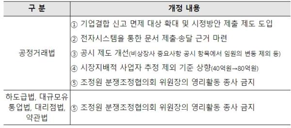또한, 공정위 사건 심의절차에 전자문서 제출 및 송달 시스템이 도입되고, 공시대상 기업들의 중복공시에 대한 부담도 완화된다.