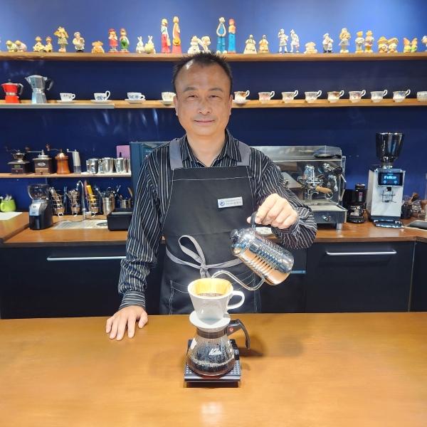 A 직업군인으로 군에서 33년 6개월을 복무하고 전역하면서 취업을 위해 모터보트, 대형면허, 굴삭기, 지게차, 화물 운송 등 다양한 자격증을 취득하고 취업 상담했으나, 경력 부족이 발목을 잡아 취업에 어려움을 겪고 있을 때 보훈부 산하 기관인 제대군인지원센터에서 근무하시는 팀장님의 말 한마디가 인생을 변하게 했습니다. 바리스타 2급을 배울 수 있는 기회가 있다는 이야기를 듣고 학원에 등록하여 배우는 과정에서 에스프레소 추출, 카푸치노 음료를 만드는 커피 머신에 반하여 커피머신관리사를 공부하며 커피머신 온도, 압력, 추출 시간, 용량, 원두 분쇄 가루 등의 요소들이 잘 이루어질 때 맛있는 커피가 추출된다는 것을 깨닫고 혼자서 알고 마시는 것보다 많은 사람이 맛있는 커피를 마실 수 있게 알려 줄 방법을 찾다가 바리스타 학원을 설립하게 됐습니다.