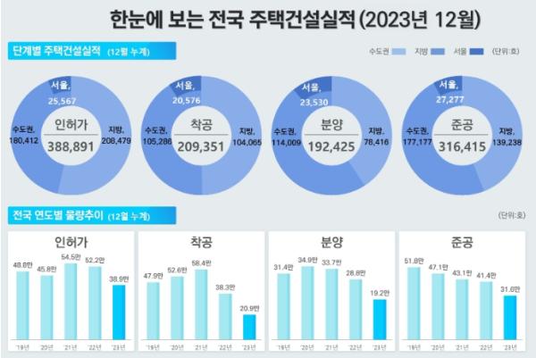 [한국쇼핑몰뉴스, 최영진기자] 국토교통부는 ’23년 12월 기준 주택 통계를 발표했다.