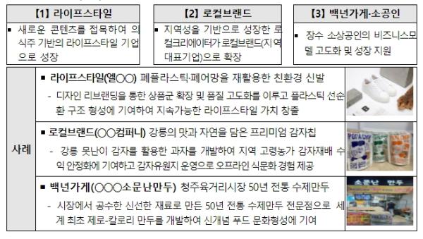 먼저 지원규모를 105개에서 210개 기업으로 대폭 확대한다. 또한 기존 생활양식(라이프스타일), 지역상표(로컬브랜드), 세계(글로벌) 분야(트랙)에서 온라인판매자(셀러)와 백년가게?소공인 유형이 신설되어 총 3개 분야(트랙) 5가지 지원유형으로 세분화된다.